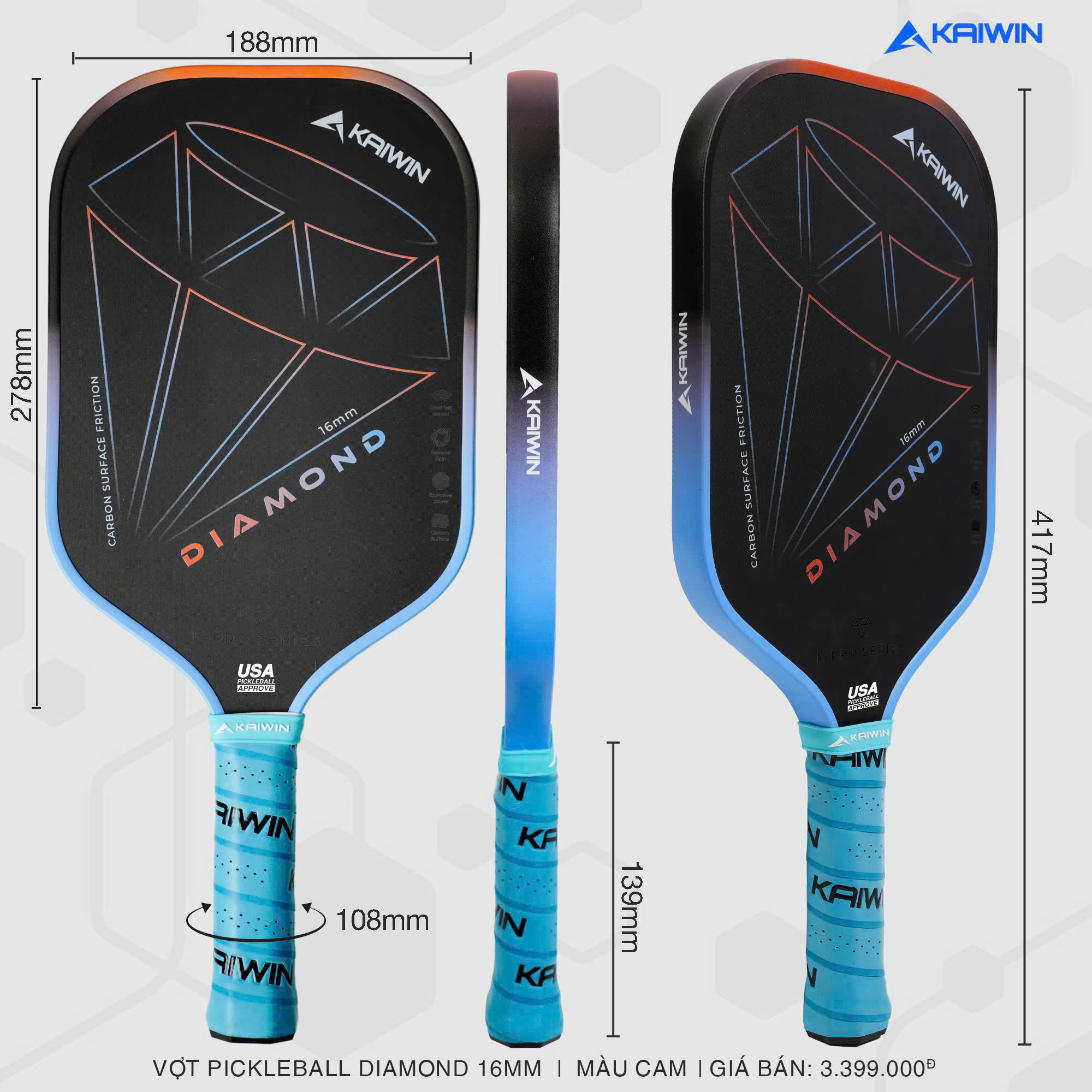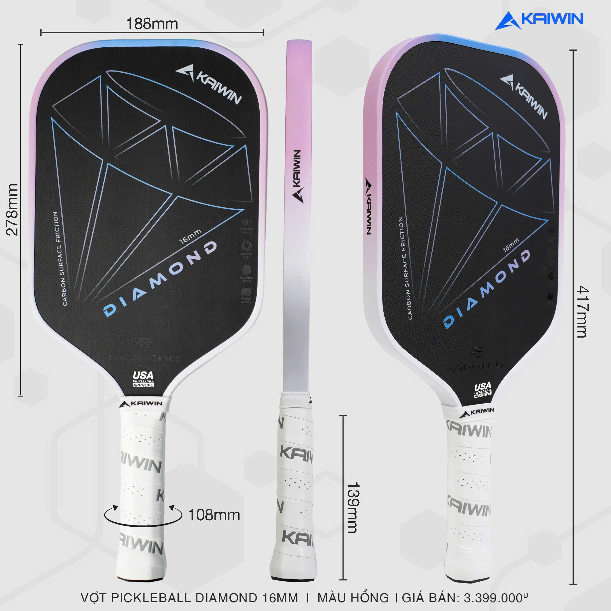 Nâng tầm trận đấu, tối ưu sức mạnh! Kaiwin tự hào giới thiệu vợt 𝑫𝑰𝑨𝑴𝑶𝑵𝑫, sản phẩm cao cấp thuộc BST vợt pickleball K-PRO SERIES.